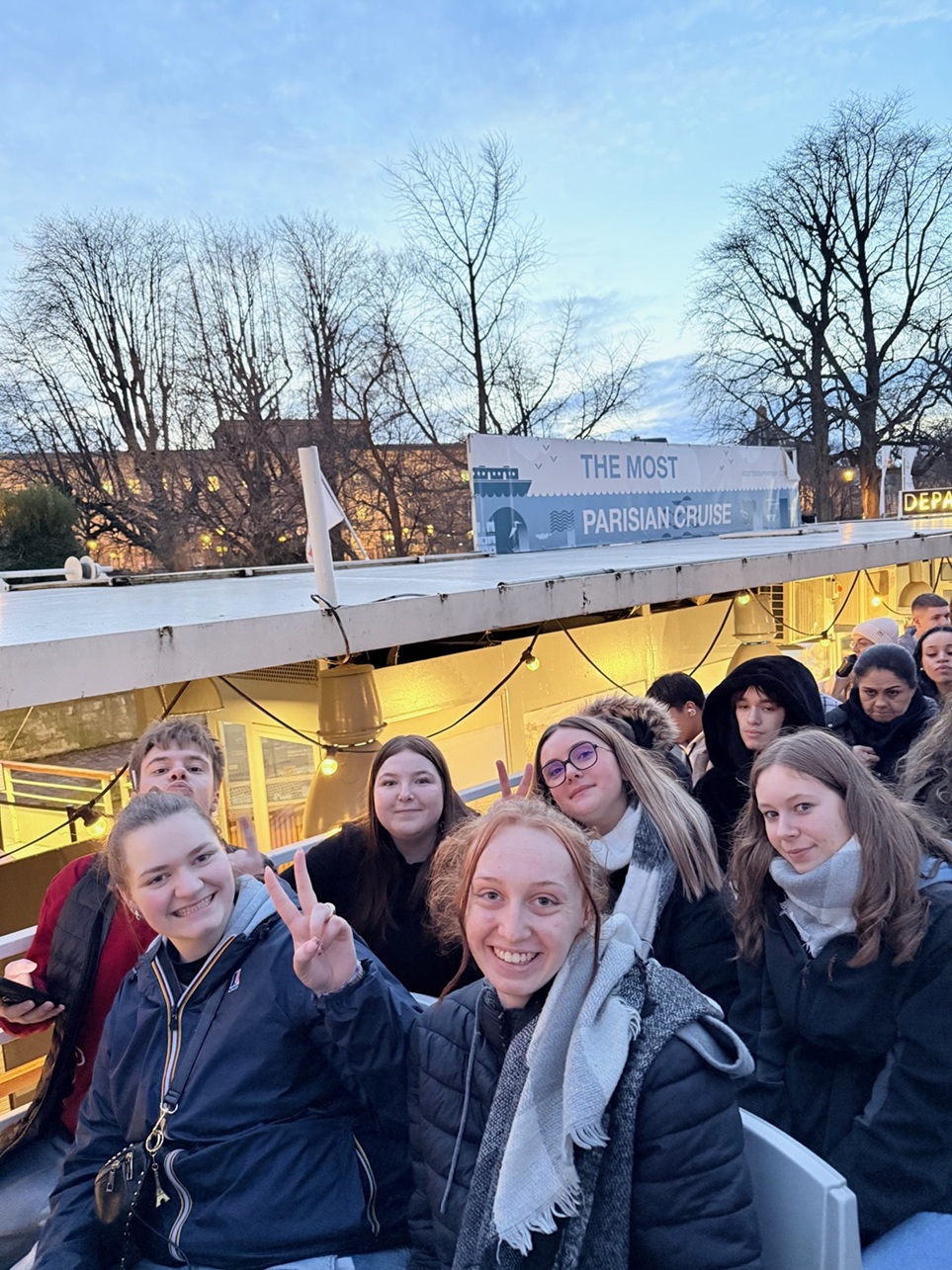 Pour finir en beauté, les élèves ont profité d’une croisière nocturne en bateau-mouche avec visite guidée, leur permettant de découvrir les monuments qui bordent la Seine (La tour Eiffel scintillante, La Conciergerie, le Musée d’Orsay, Notre-Dame et les différents ponts).